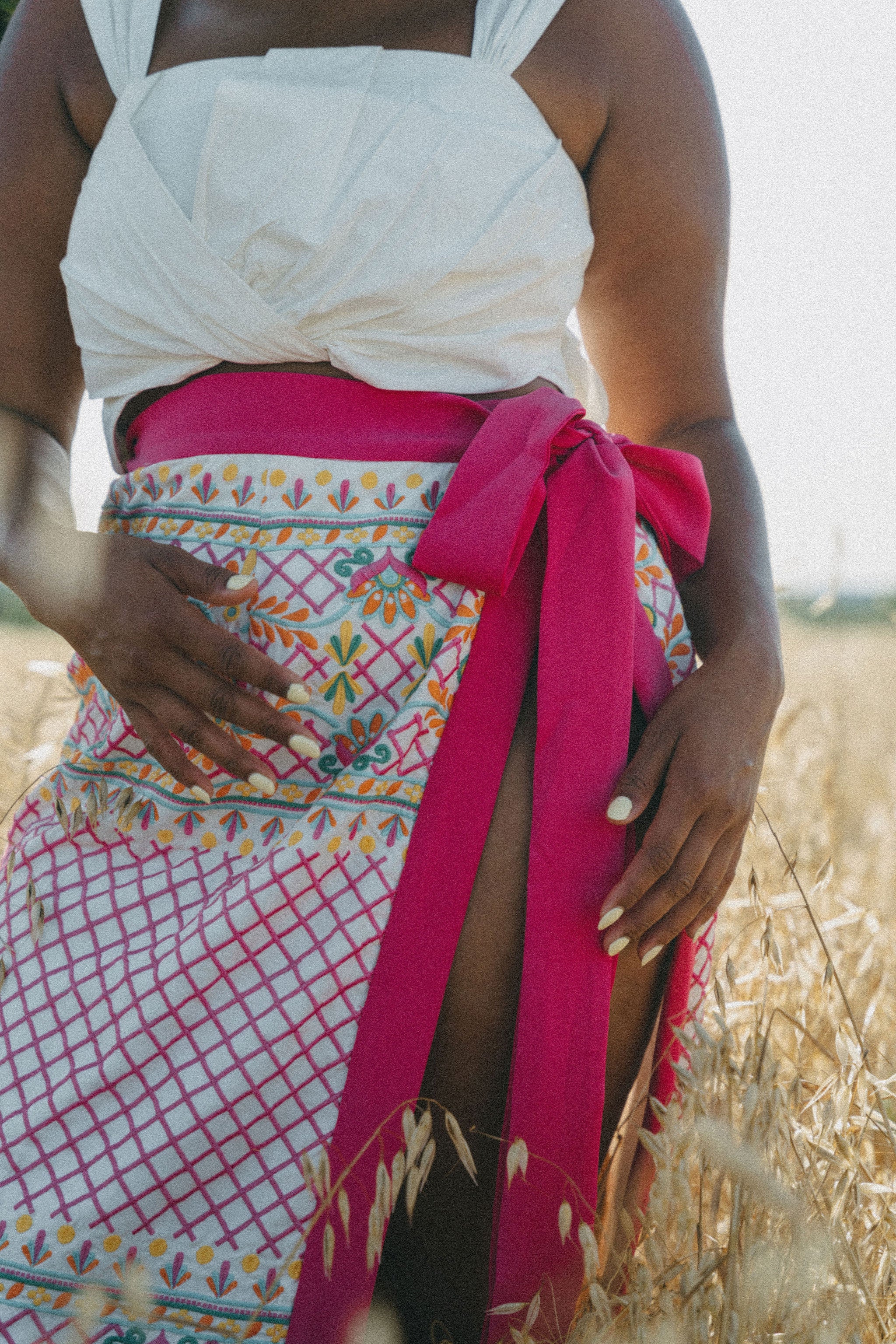 Each and every piece is signed by one of the artisans who worked on it. Clothing can take hours to make which is why it is important to know that each person working on our collections has been paid a livable wage and treated with respect in a safe environment.