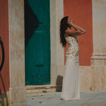 Step into the realm of timeless sophistication with our stunning maxi dress adorned with our intricate "Eliza" floral embroidery design. This dress is a true masterpiece, designed to captivate hearts and turn heads with its unique details and elegant silhouette.