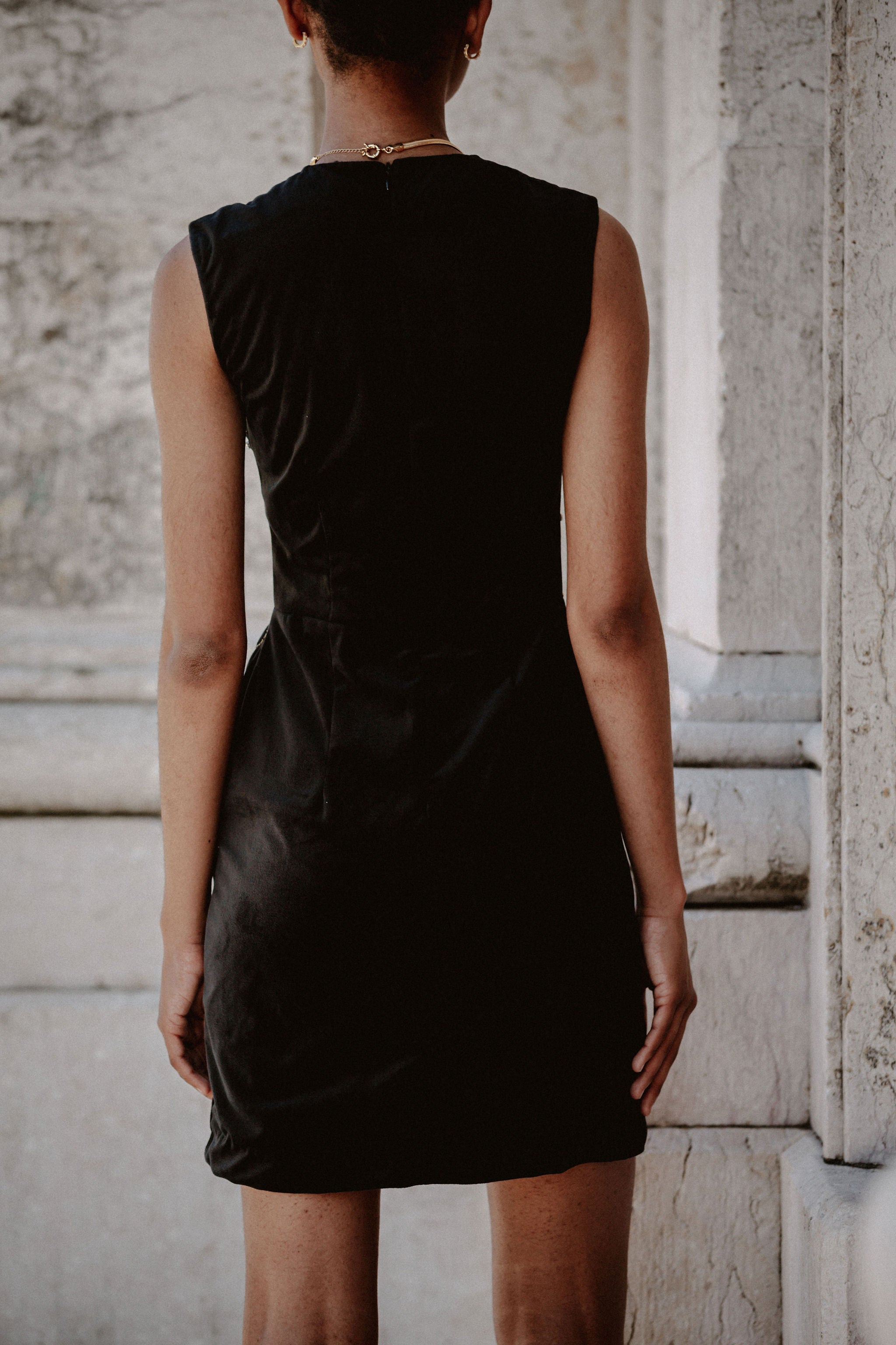 • Invisible zip along back