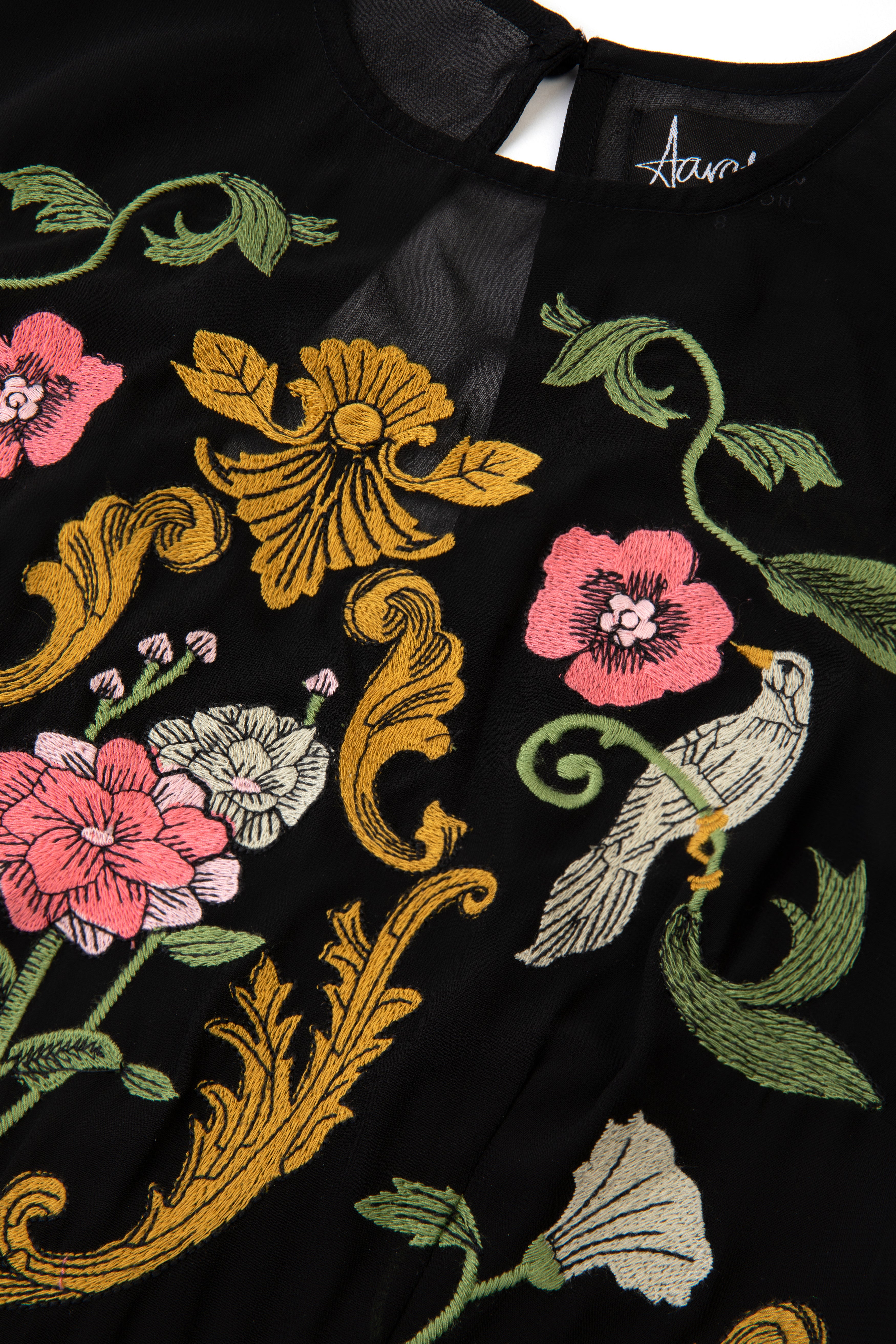 Each and every piece is signed by one of the artisans who worked on it. Clothing can take hours to make which is why it is important to know that each person working on our collections has been paid a livable wage and treated with respect in a safe environment.