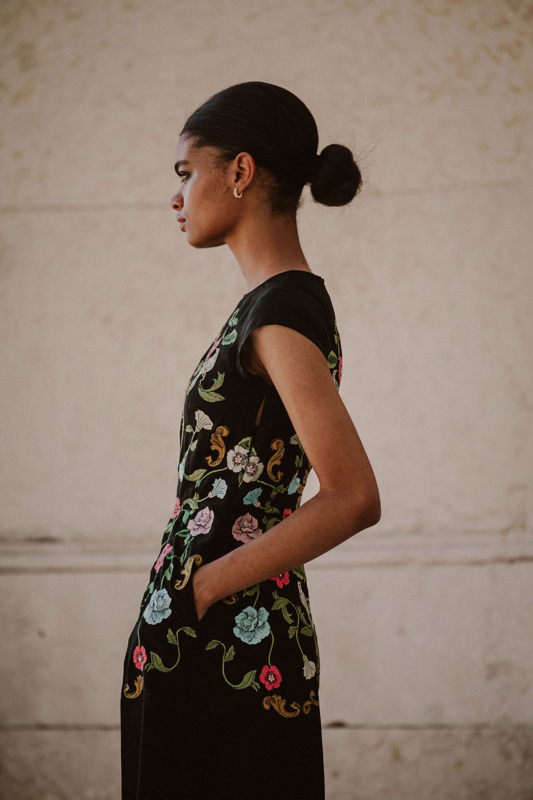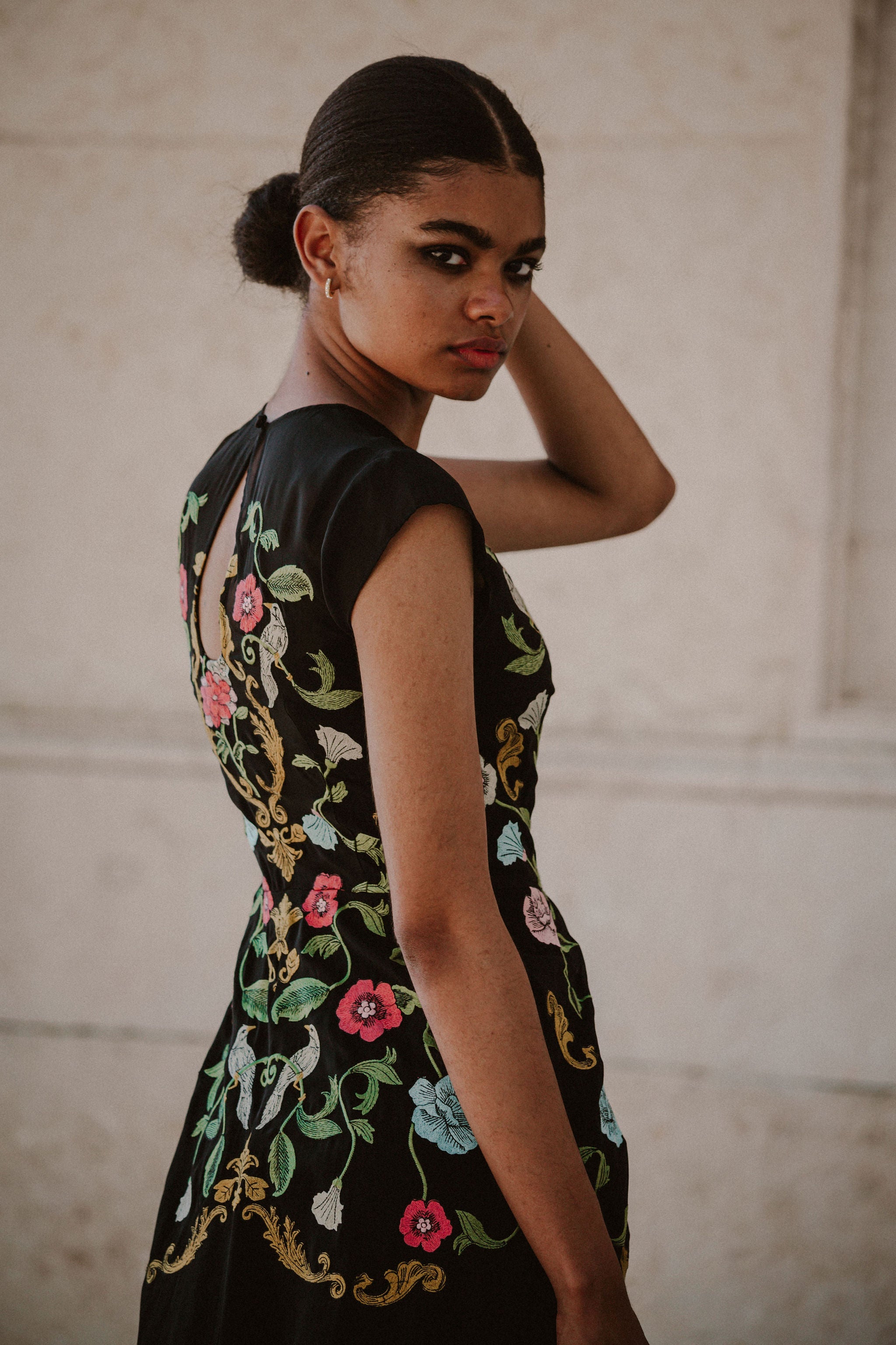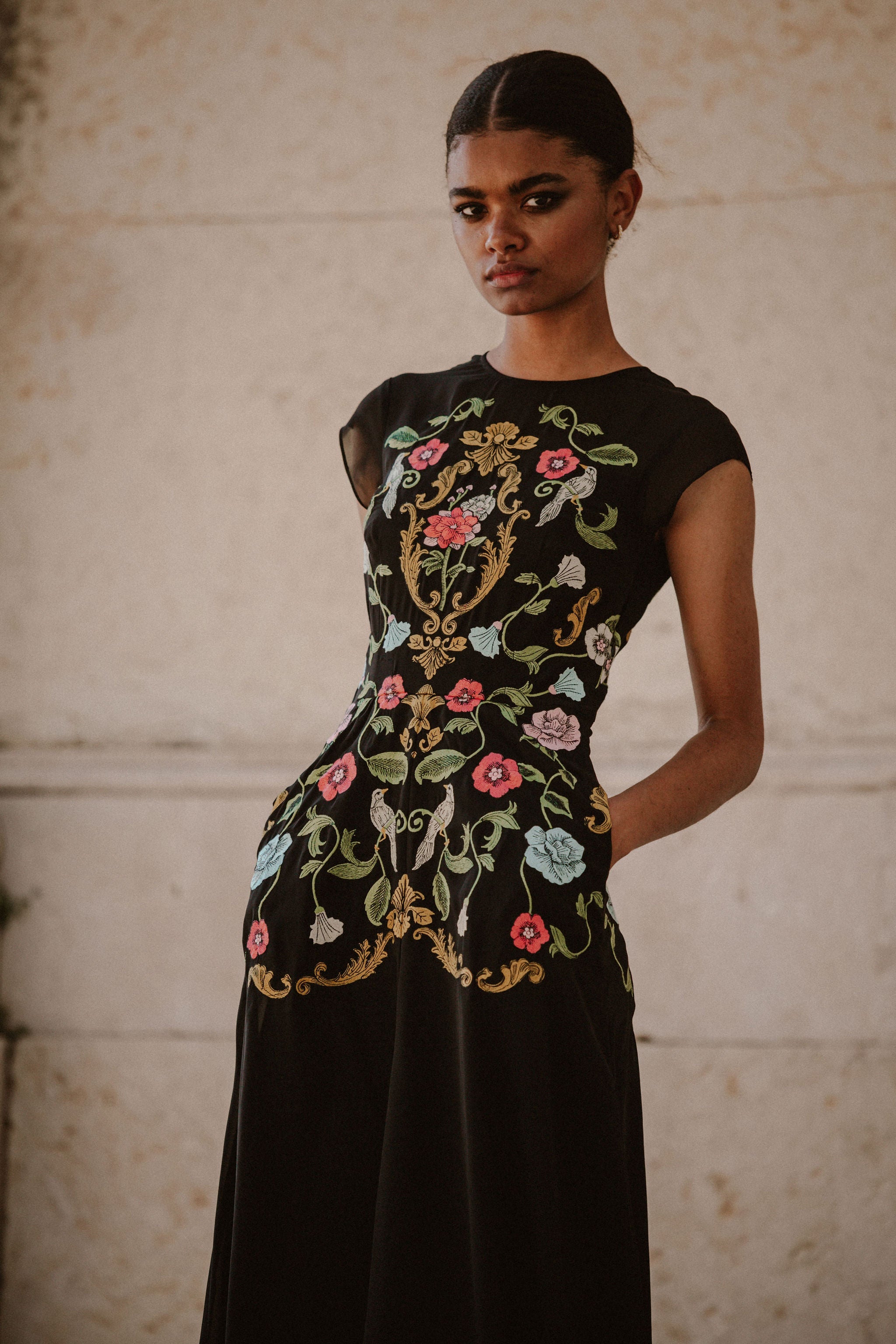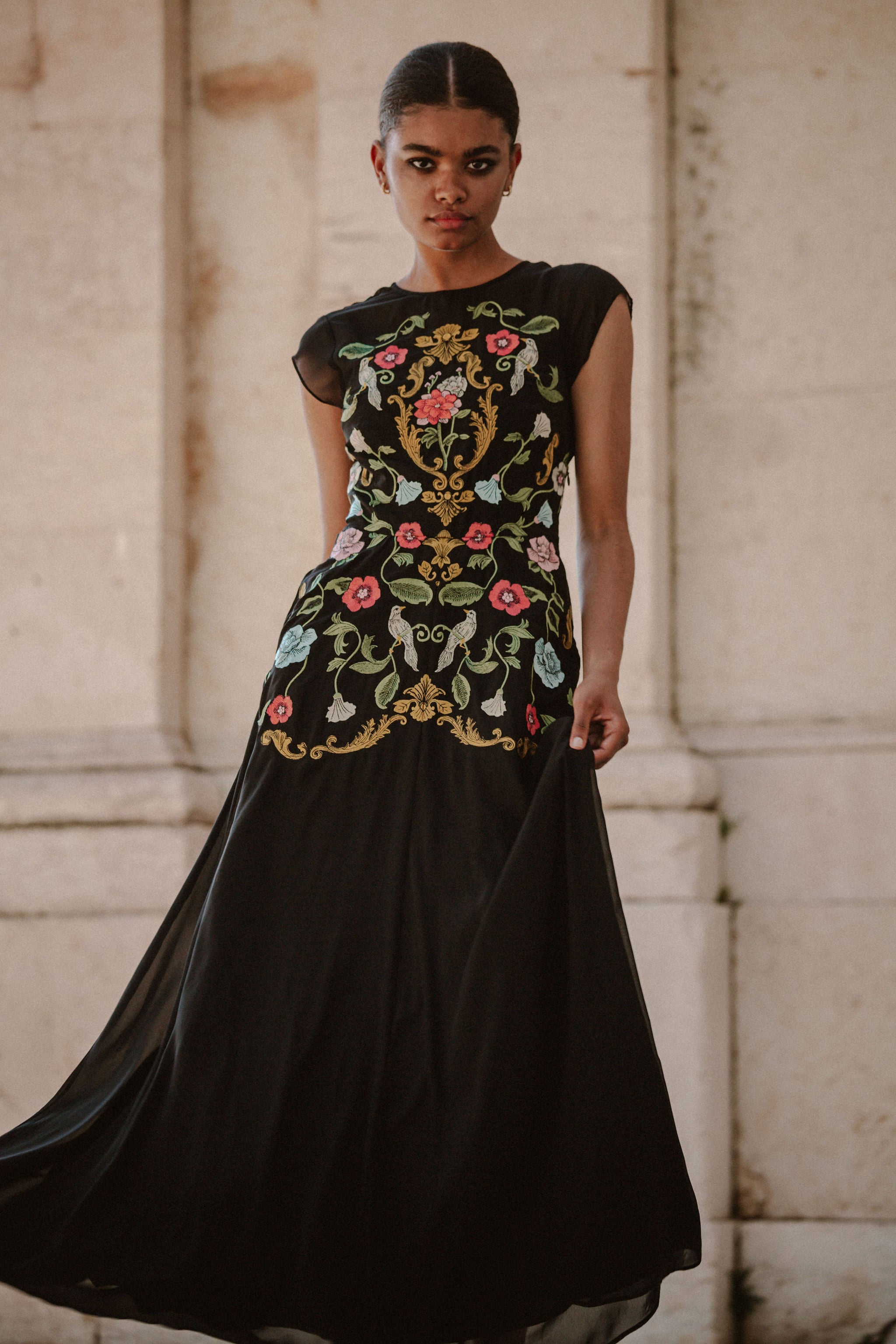 Madeline Embroidered Black Maxi Dress