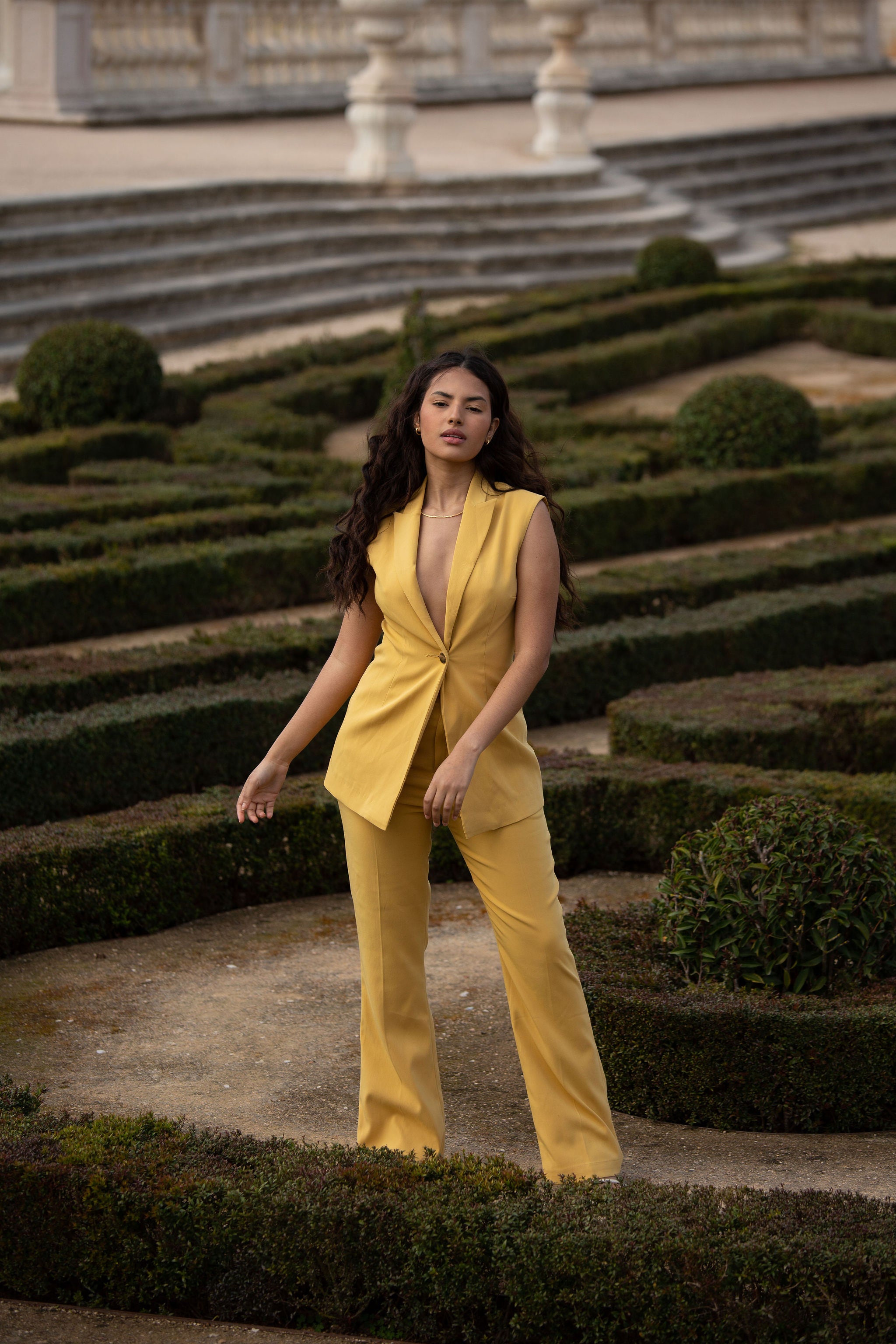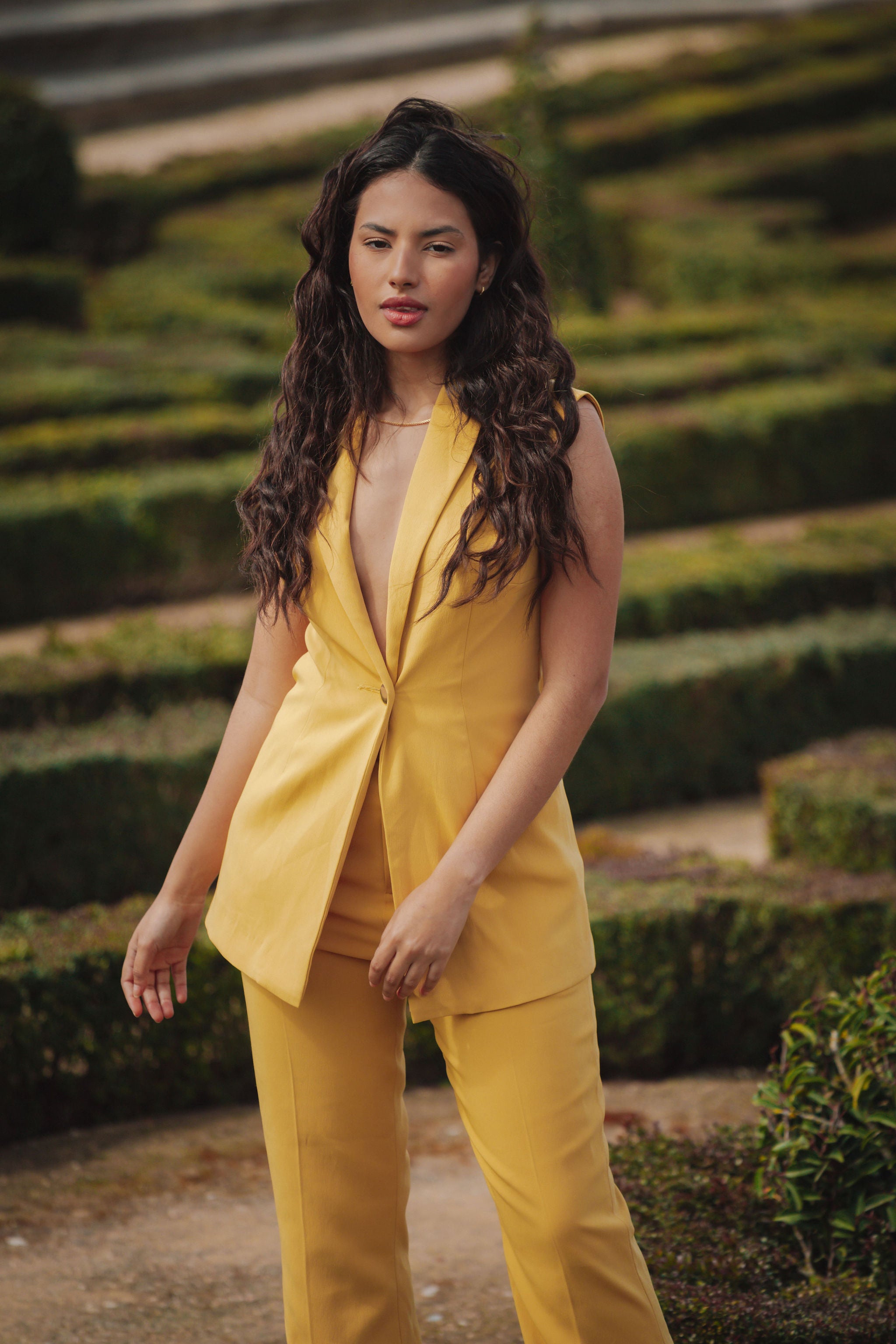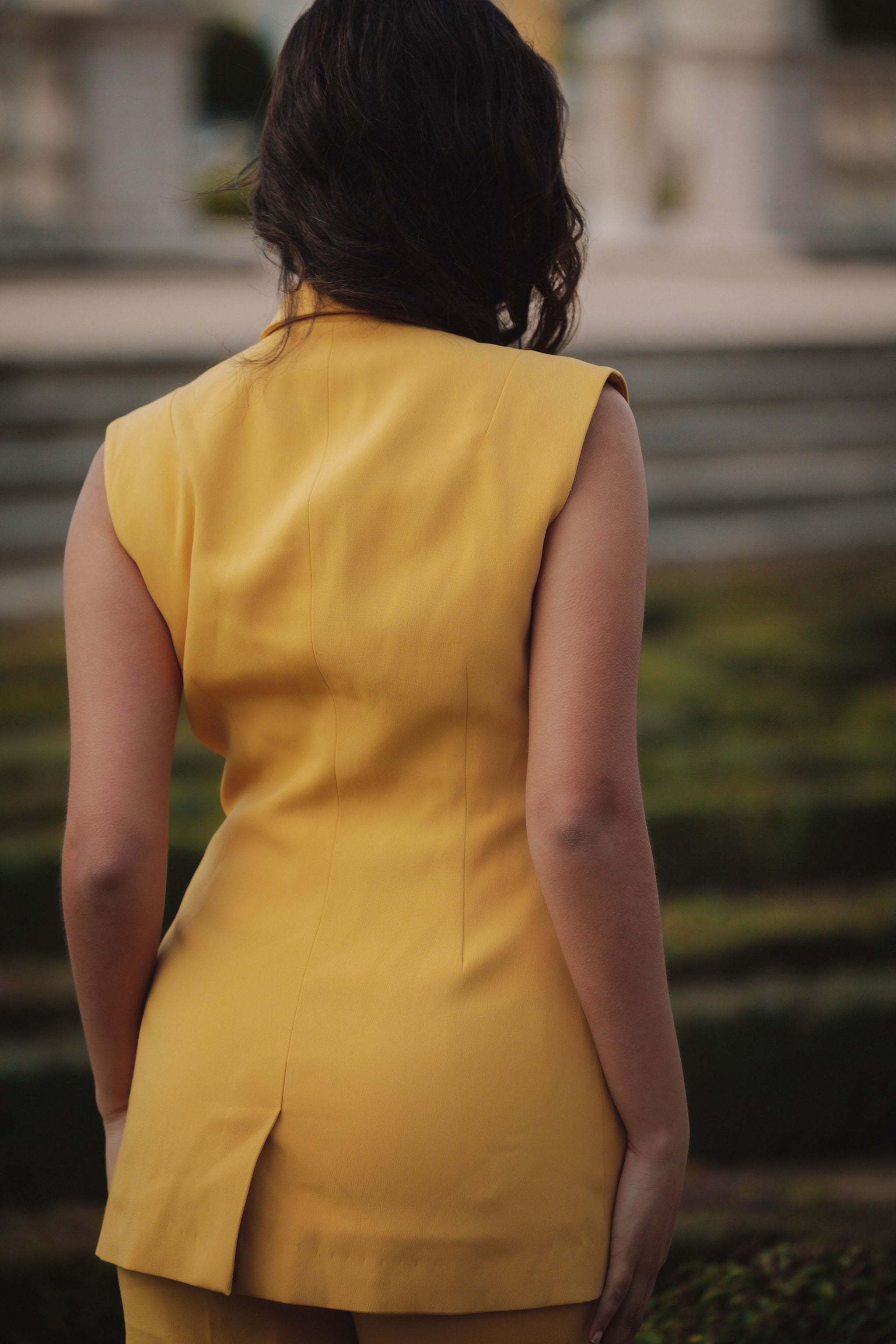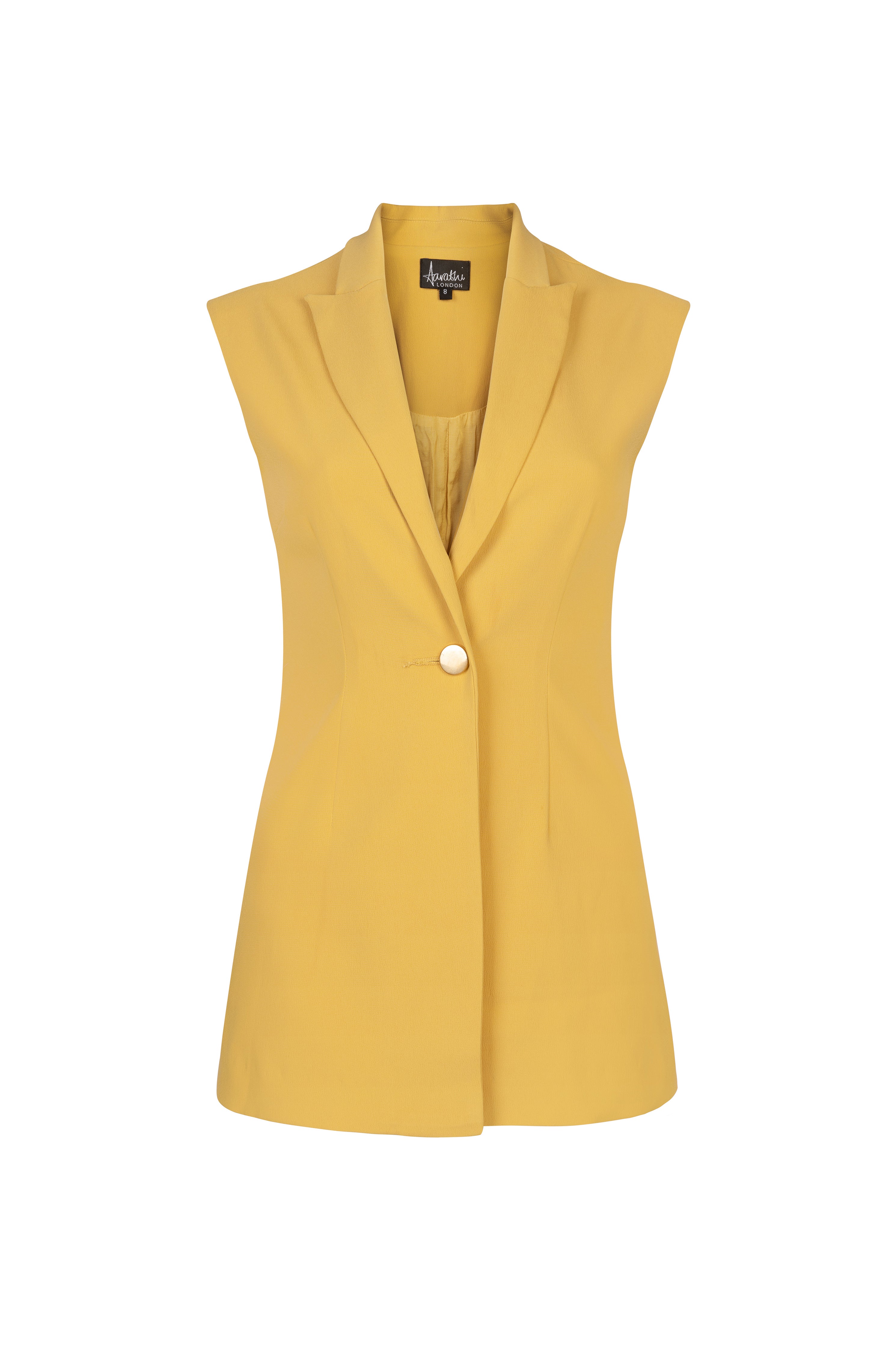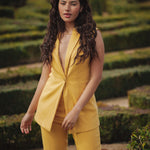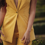 A statement piece for sure! Brighten up any outfit with this sunny yellow Sandy Sleeveless Blazer. Tailored to perfection, it’s a great blend of versatile and stylish.This piece will take you from day to night.