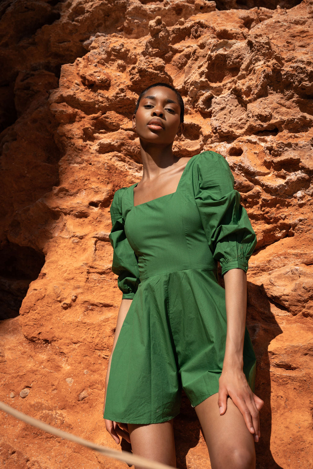 Made from soft and sustainable organic cotton, this playsuit combines cuteness and eco-consciousness in the most delightful way. With its flared shorts and playful balloon sleeves, this playsuit is the epitome of fun and style. Whether you're attending a music festival, going on a picnic, or simply lounging with friends, this playsuit is your go-to outfit for endless summer fun.