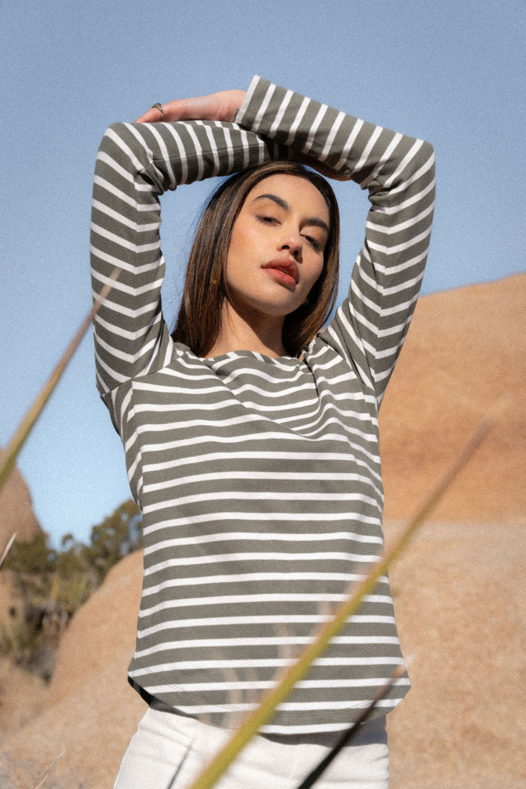 Designed with your comfort in mind, the top features a flattering semi-fitted silhouette with a curved hem, adding a touch of sophistication to your look. The thick and warm fabric, a blend of 95% cotton and 5% elastane, ensures coziness on chilly days while allowing for a comfortable stretch.