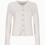 Made from luxurious cream textured fabric and featuring long sleeves and gold buttons, this classic and versatile style is perfect for any occasion. Plus, it's sustainably made using deadstock fabrics, making it a guilt-free addition to your wardrobe that you can wear for years to come.