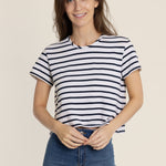 The Box Navy Striped T-shirt made from Deadstock Fabrics