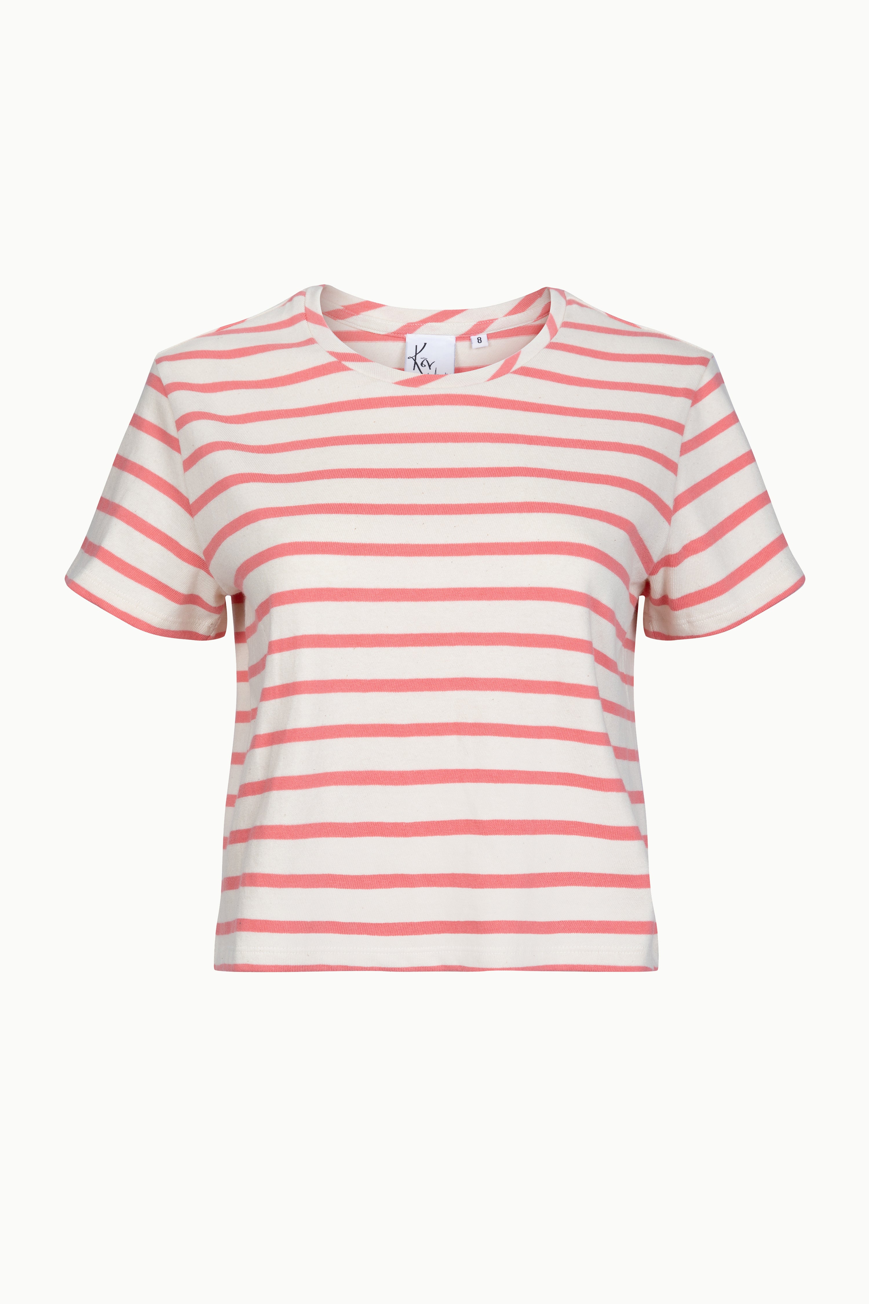 Introducing The Box Pink Striped T-Shirt – a perfect blend of comfort, style, and sustainability. Crafted from high-quality deadstock fabric, this t-shirt not only looks good but also contributes to reducing fashion waste. With a trendy boxy fit and a waist-cropped silhouette, this shirt effortlessly combines fashion-forward aesthetics with casual comfort. The relaxed fit ensures breathability, making it an ideal choice for everyday wear.