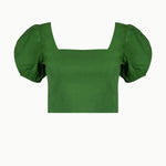 Introducing The Co-Ord in Green, a stylish and sustainable set made from organic cotton. The puffy short sleeves and flared skort create a feminine and flirty look, perfect for summer.