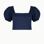 Introducing The Co-Ord in Navy, a stylish and sustainable set made from organic cotton. The puffy short sleeves and flared skort create a feminine and flirty look, perfect for summer.
