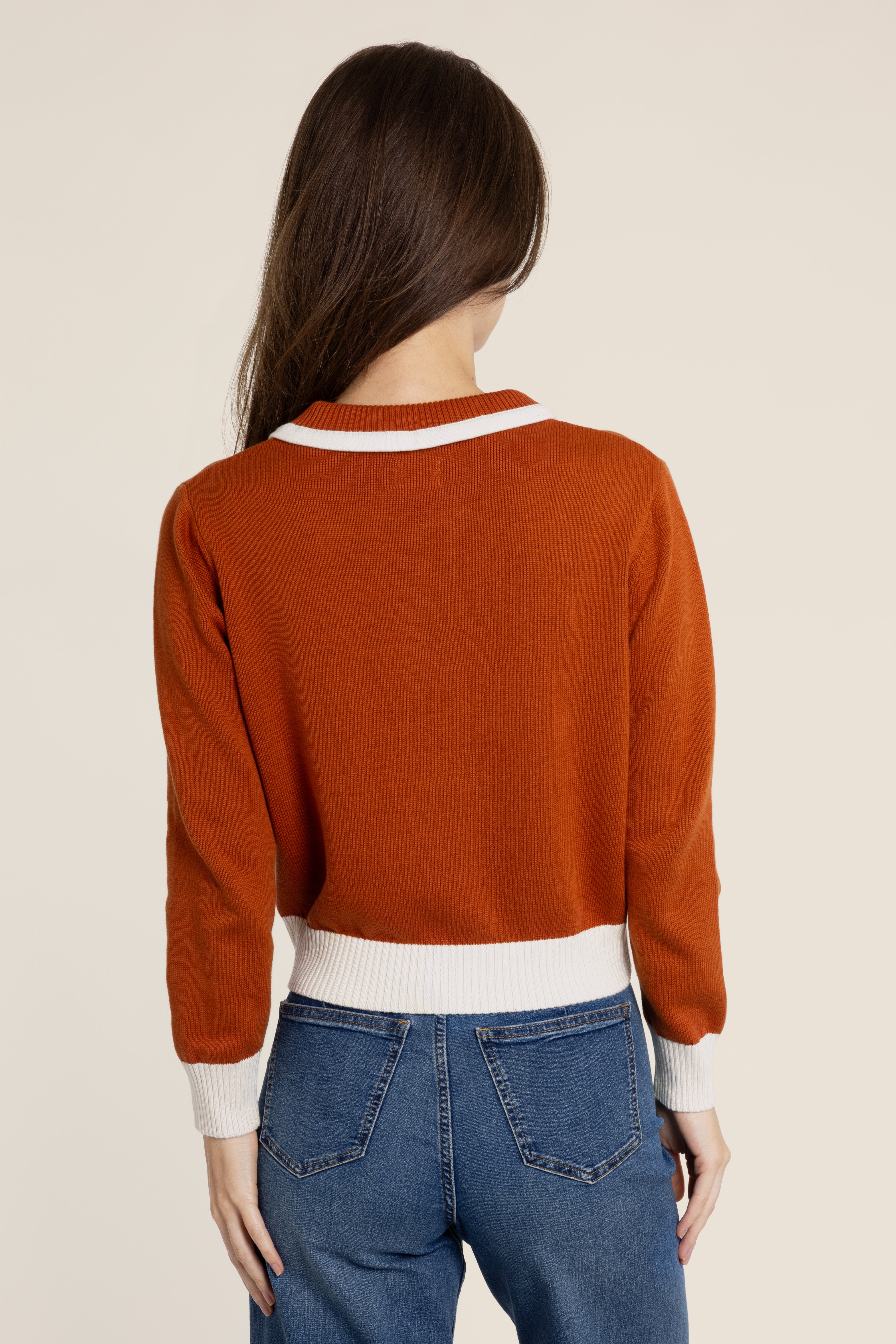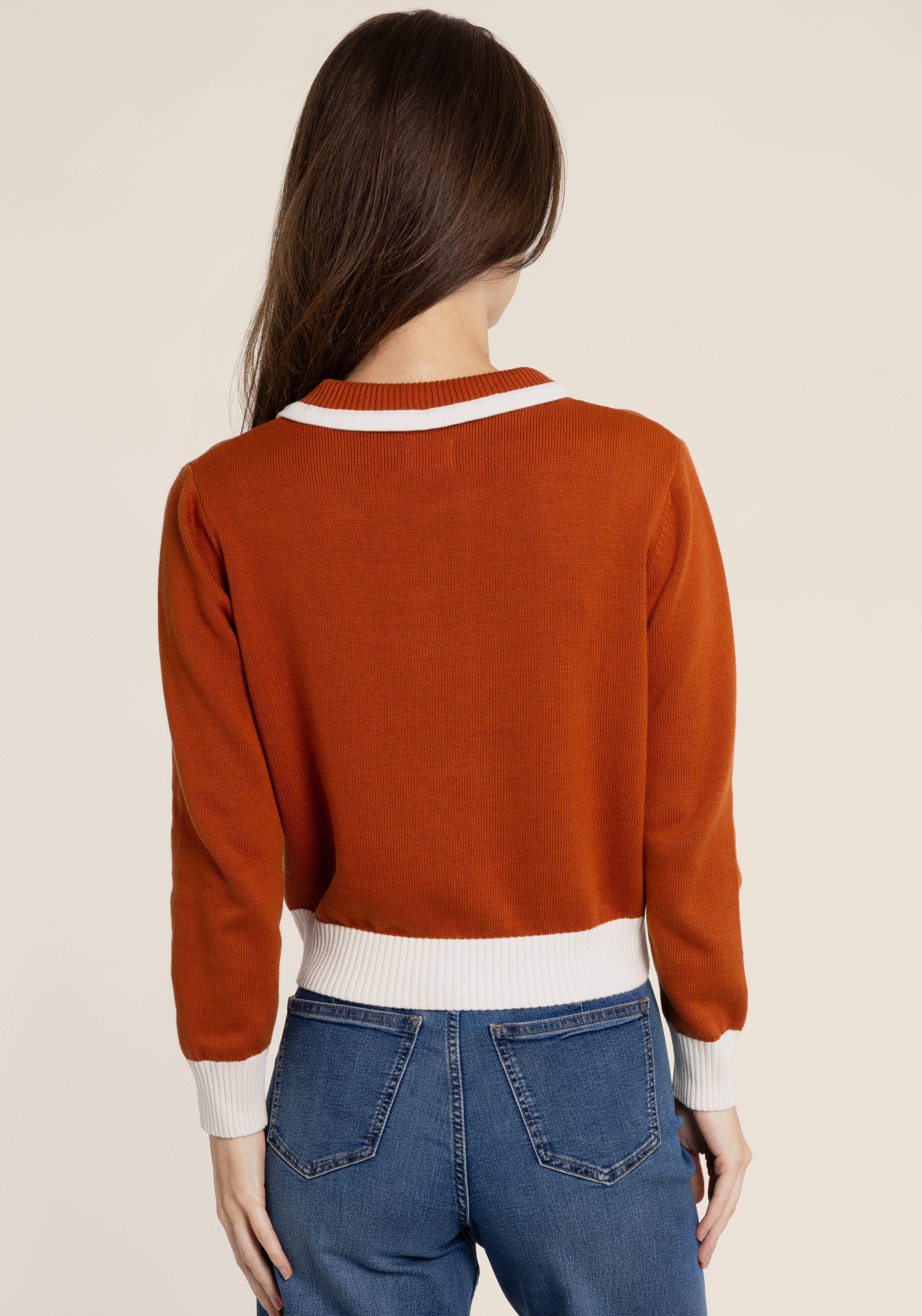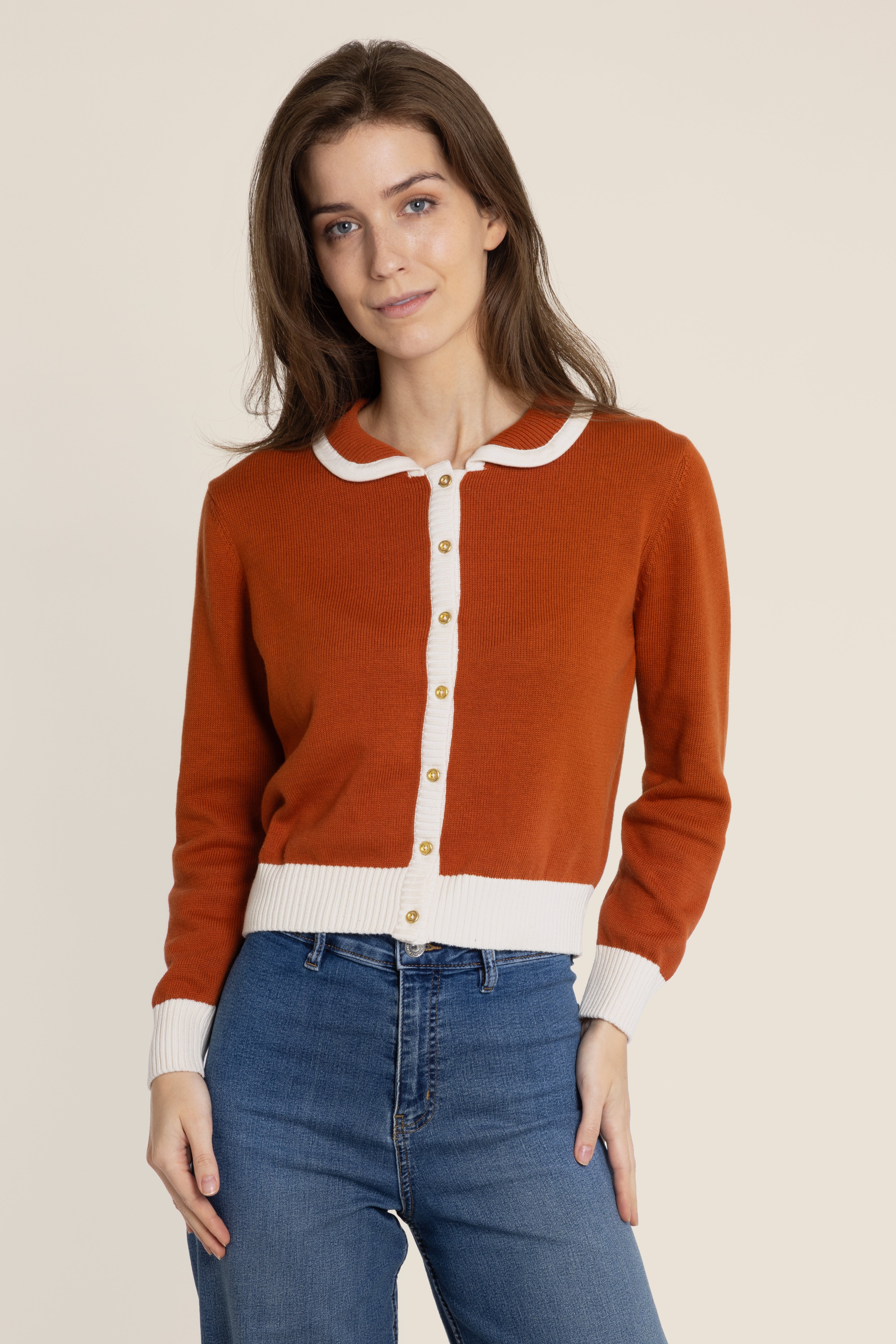 Whether you're headed to work or dressing up for a night out, the Kōr Cardigan in Terracotta has got you covered. Made from organic cotton, this cardigan features a stylish peter pan collar and is easy to style with any outfit. Stay comfortablen this versatile cardigan.