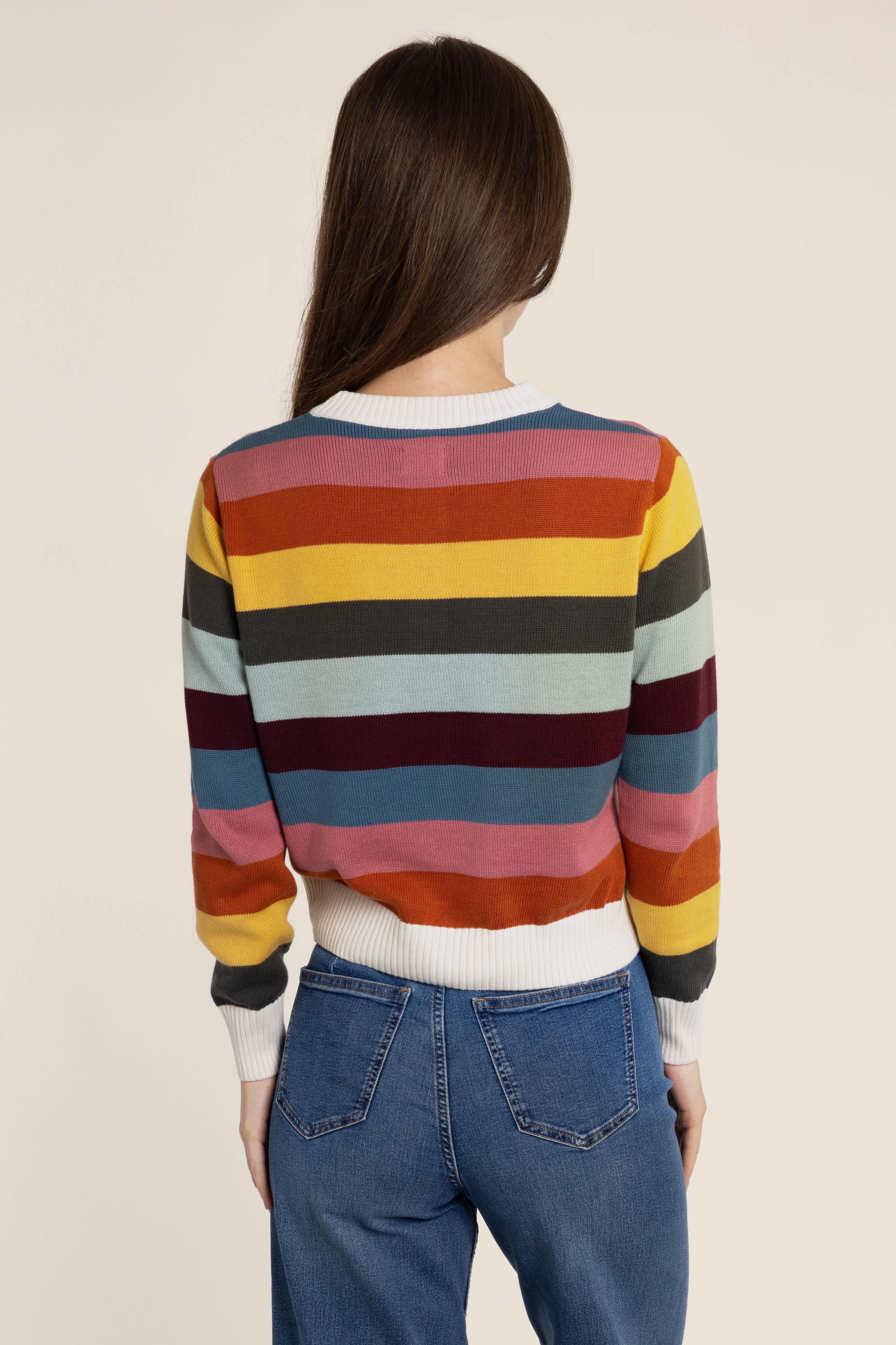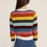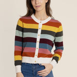 Introducing The Kōr Stripe Cardigan, your new go-to for effortless style. Made from soft organic cotton, this colourful striped cardigan will take you from day to night. Don't be afraid to wear it on repeat, it's gentle on your skin and the perfect addition to any outfit!