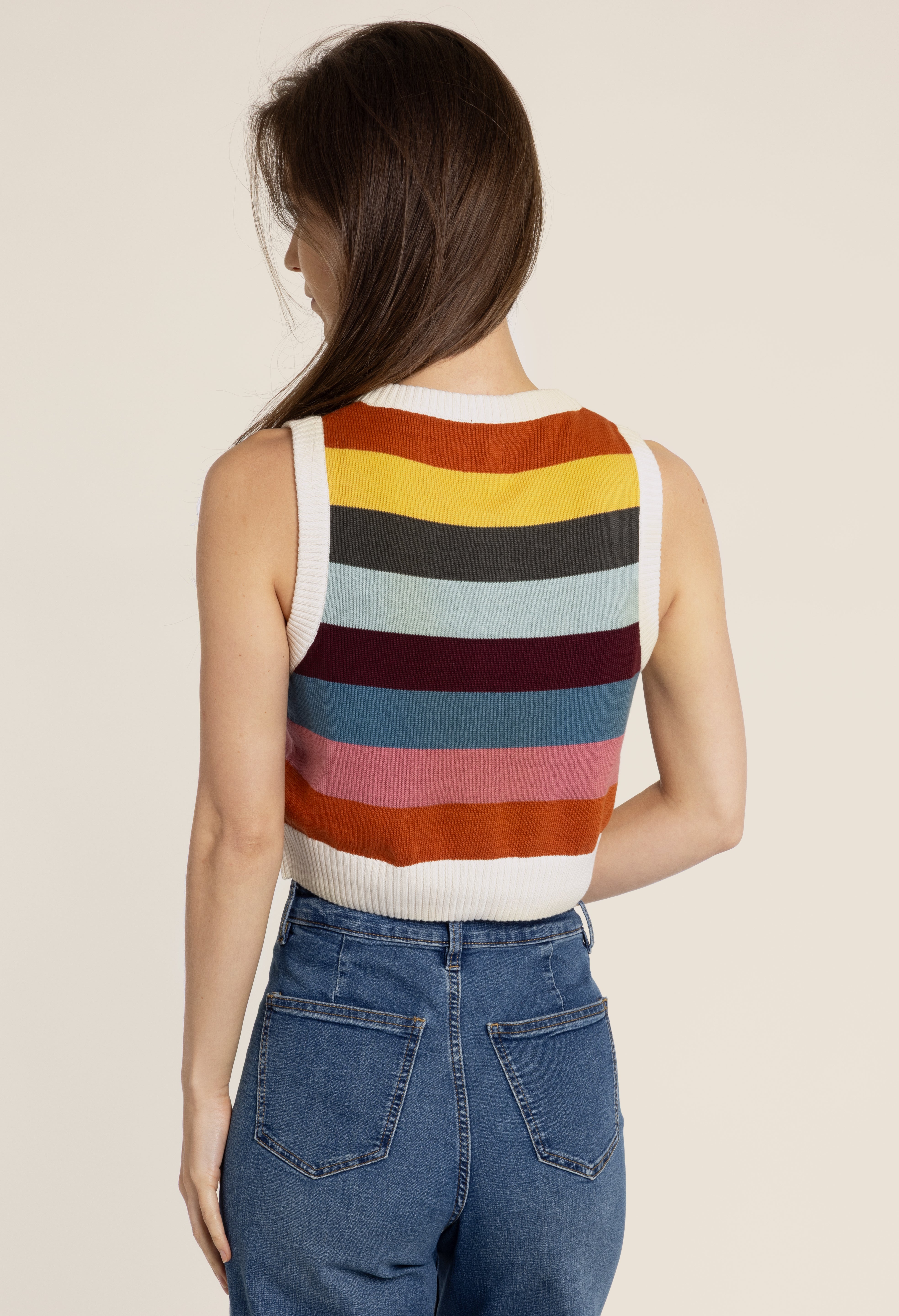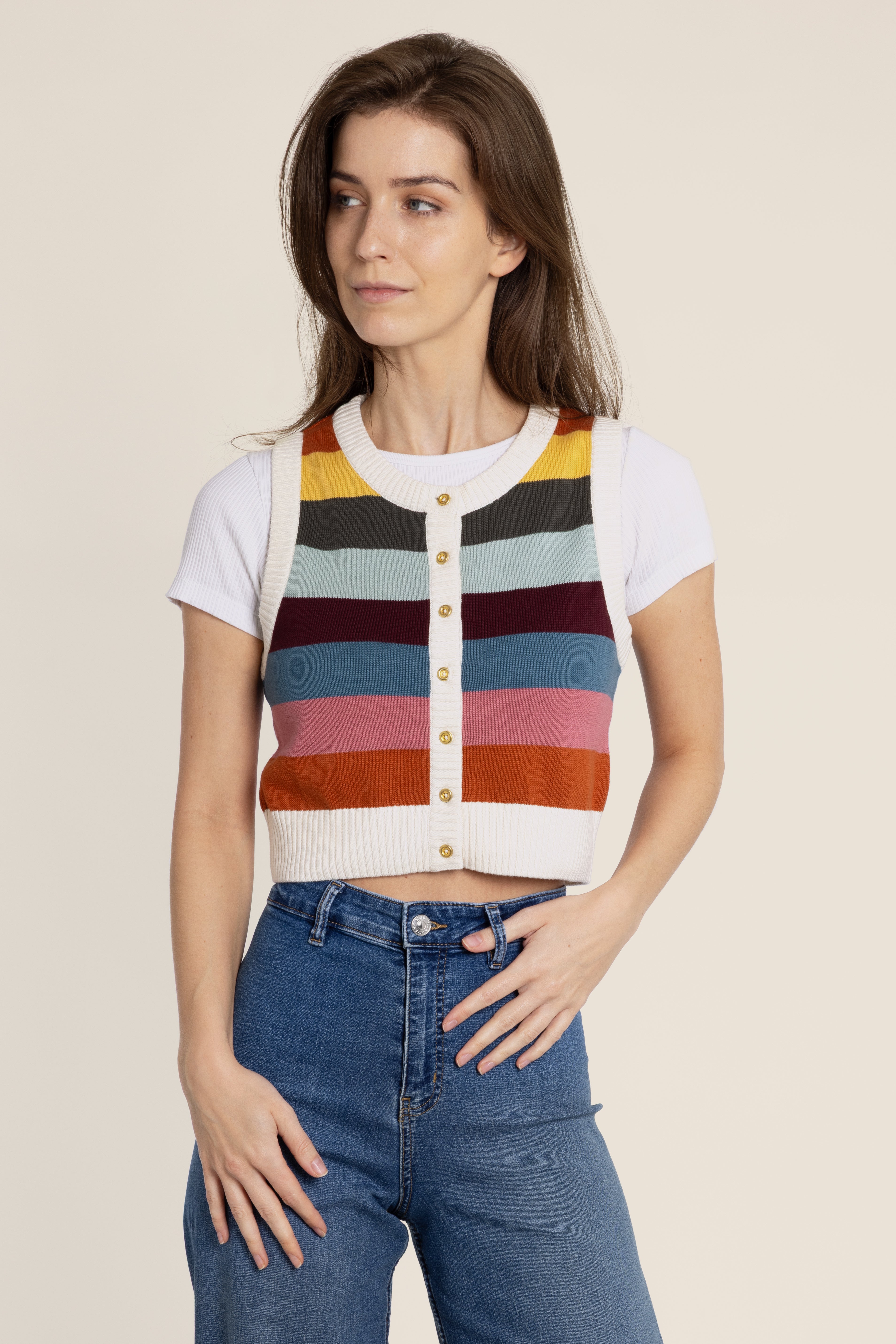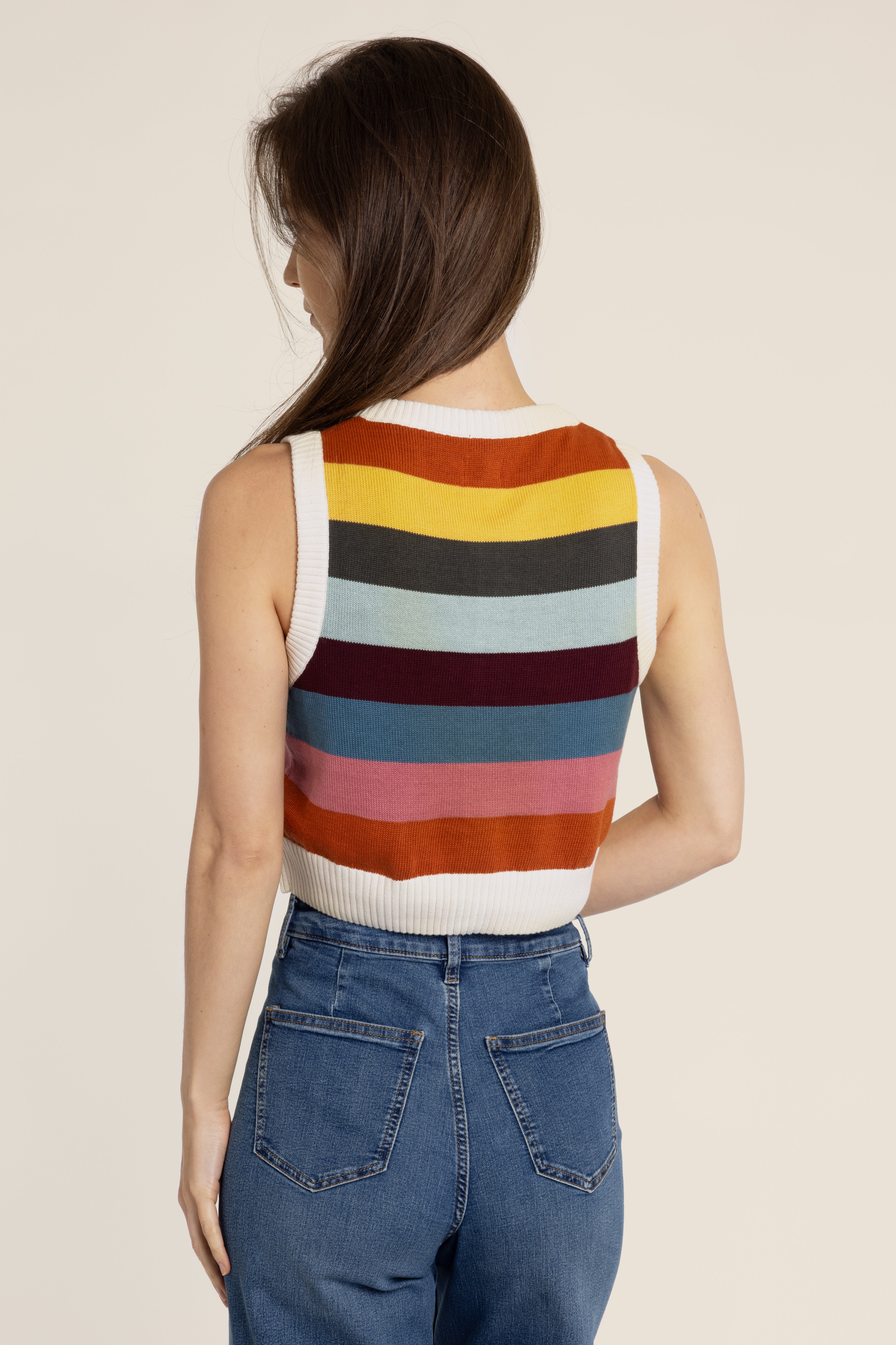 The Kōr Stripe Waistcoat is our new knit waistcoat that features our colourful Kōr stripe design. Made from organic cotton, it offers a more fitted look and can be styled on it's own, with a t-shirt or even a thermal long-sleeve for those colder days.