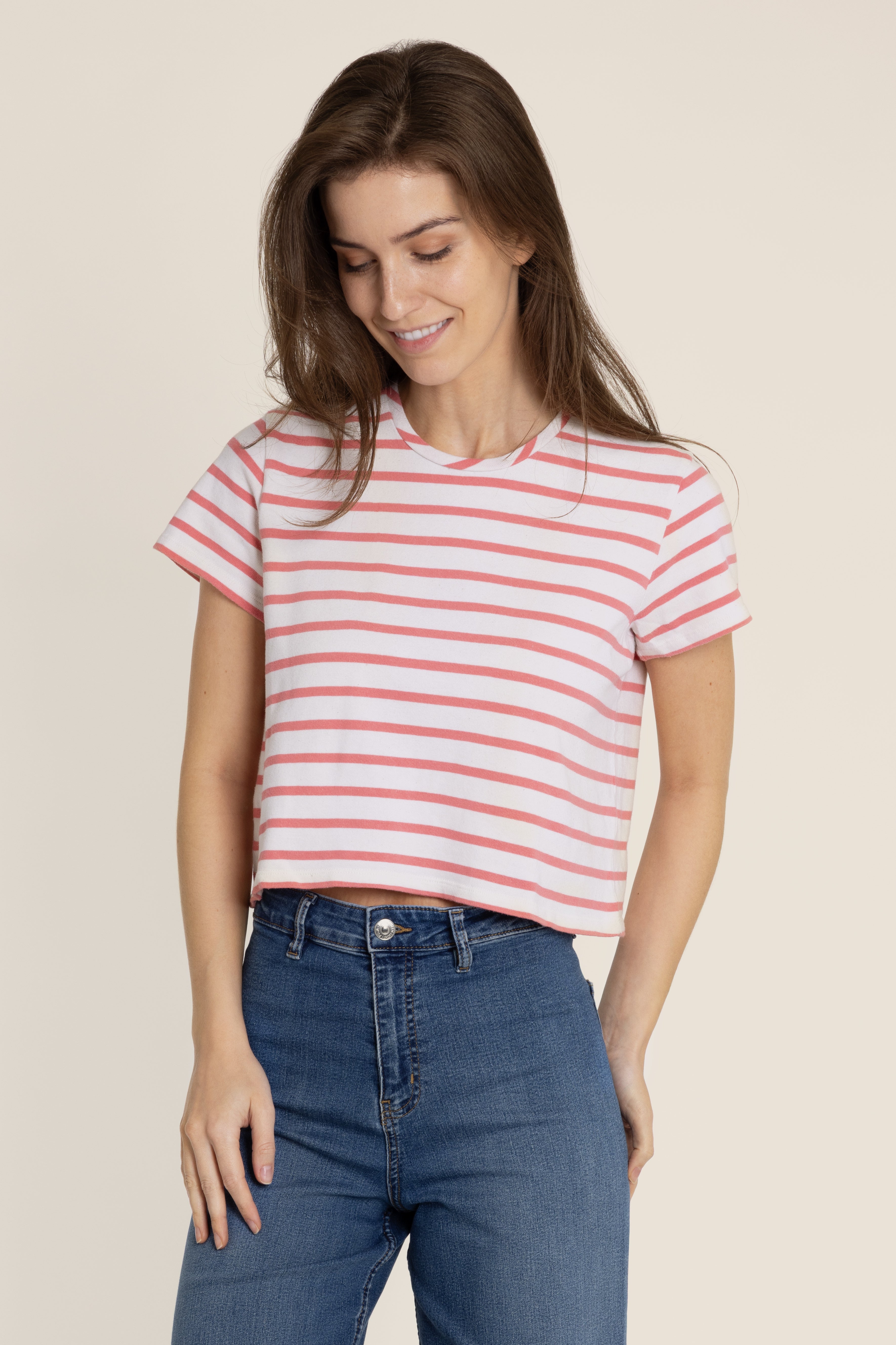 The Box Pink Striped T-shirt made from Deadstock Fabrics
