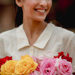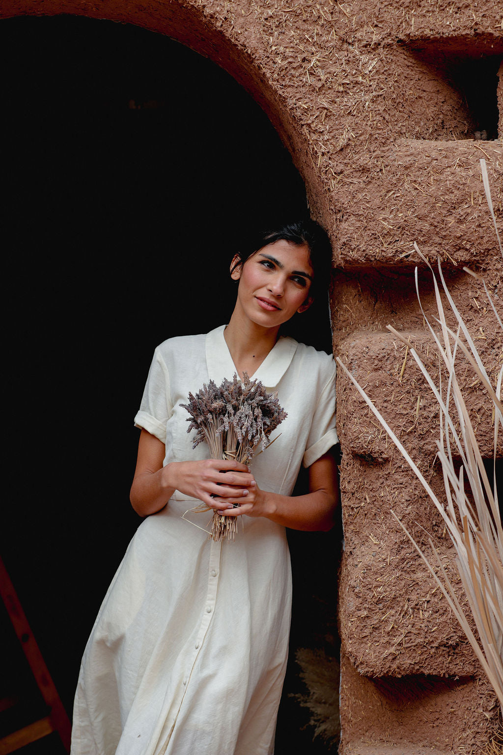 Each and every piece is signed by one of the artisans who worked on it. Clothing can take hours to make which is why it is important to know that each person working on our collections has been paid a livable wage and treated with respect in a safe environment.