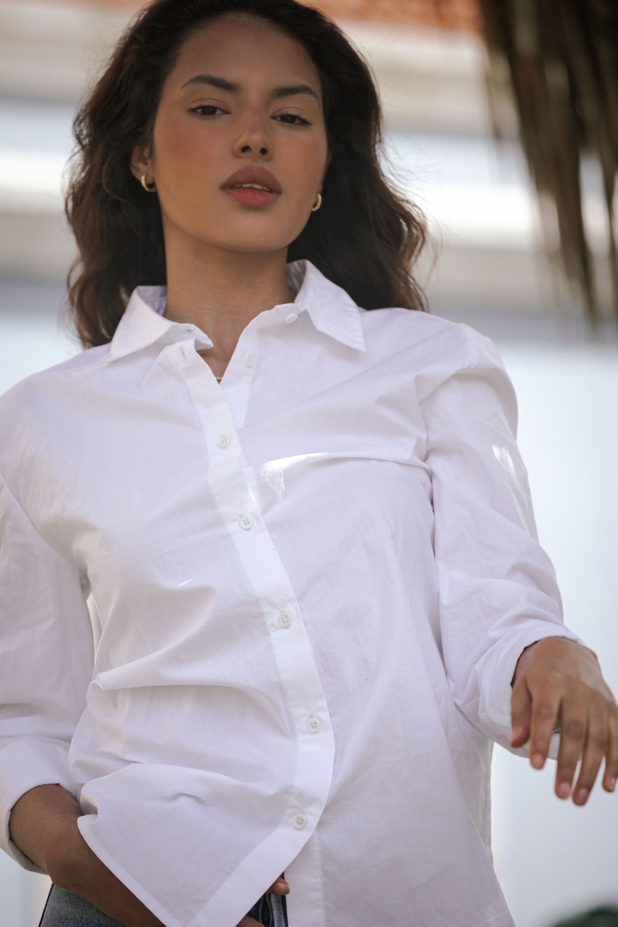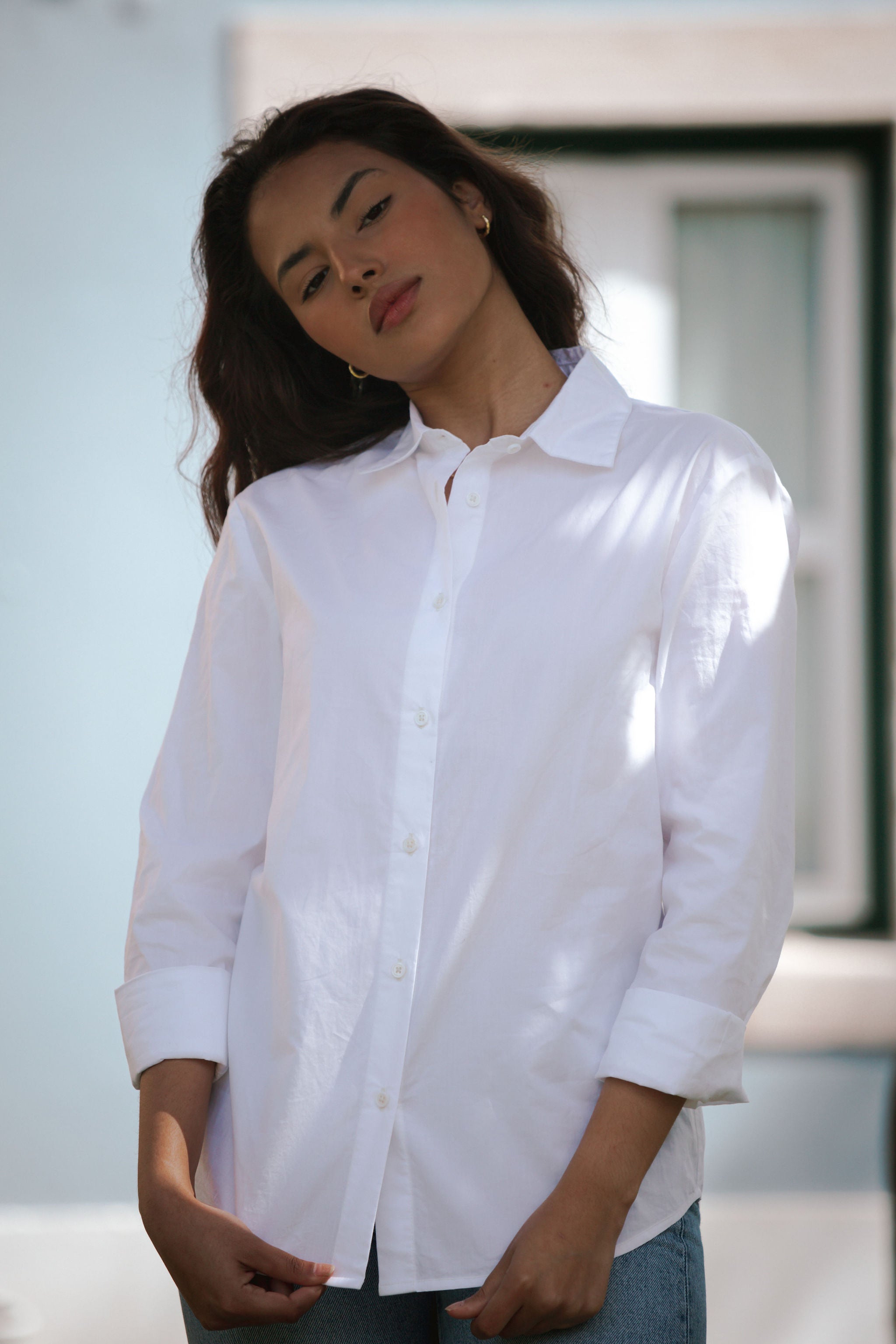 If you're looking for a sustainable and stylish addition to your wardrobe, look no further than our white women's shirt made from 100% organic cotton.